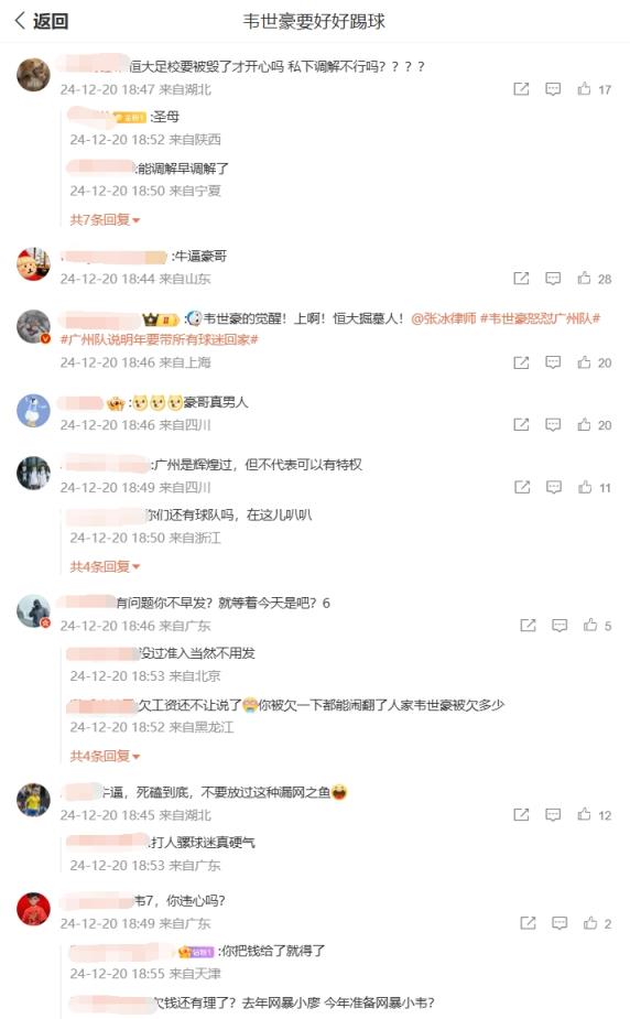 你怎么看?韋世豪微博評論區兩種聲音:廣州待你不薄vs欠債還錢